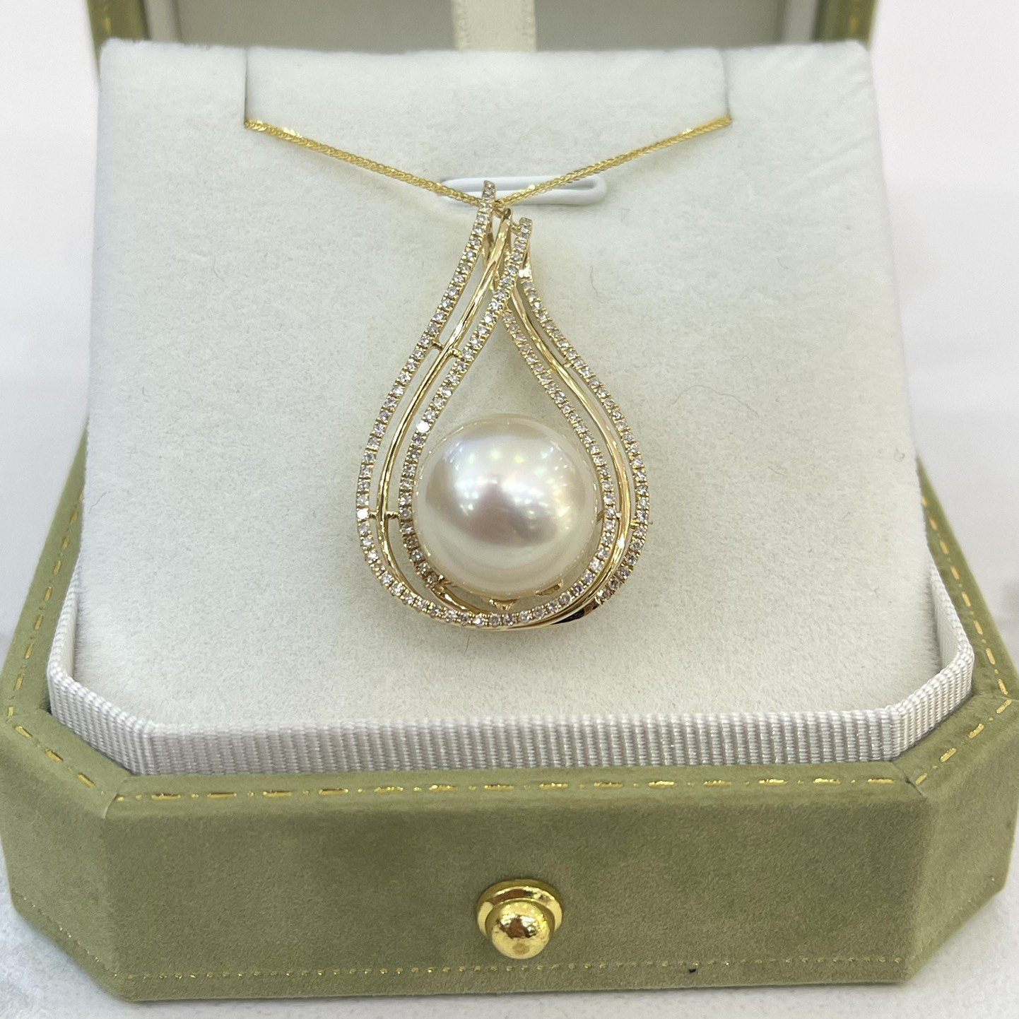 The three-line outline of the water drop shape is soft and flexible, with delicate small diamonds studded on both sides. It is made of 18K gold with a light dry rose color, which is warmer and softer. The pearl is round, has strong light and fewer flaws, with a slightly growth pattern. The overall style is simple, fashionable and smart.